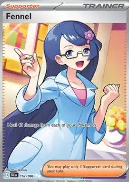 Kortet viser Fennel i et flot og farverigt artwork med klassisk Pokémon stil og stærk samlerappel